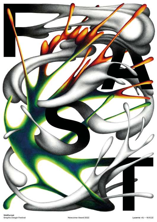 Dieses Jahr erreichten weltweit 659 visuelle Interpretationen des Themas Speed die aus Plakatgestalter:innen bestehende Jury des Weltformat Newcomer Award. Die Entwürfe zeigen die Vielfalt an Methoden, Techniken und Herangehensweisen der unter 30 jährigen Gestalter:innen.