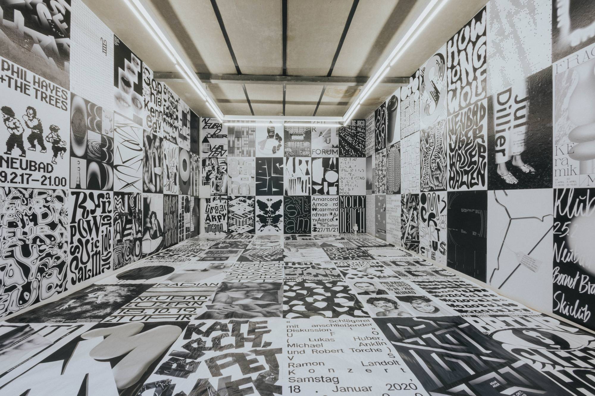 Das Luzerner Kultur- und Atelierhaus Neubad feierte im Jahr 2023 sein zehnjähriges Bestehen. Während dieser gesamten Dekade hat sich eine eindrucksvolle Sammlung von schwarz-weissen Plakaten angesammelt, die in vielerlei Hinsicht die Vielfalt und den unverwechselbaren Charakter des Neubads sowie der Schwarz-Weiss-Plakatkunst widerspiegeln. Die Besuchenden durften in der Neubad Plakate Ausstellung das Elephanthouse in voller Pracht betreten, zugekleistert mit 120 Neubad Plakaten. Dabei bewunderte man die eindrucksvollen Schwarz-Weiss-Plakate, die in den letzten zehn Jahren von über 100 internationalen Künstler:innen für das Luzerner Kulturhaus Neubad geschaffen wurden.