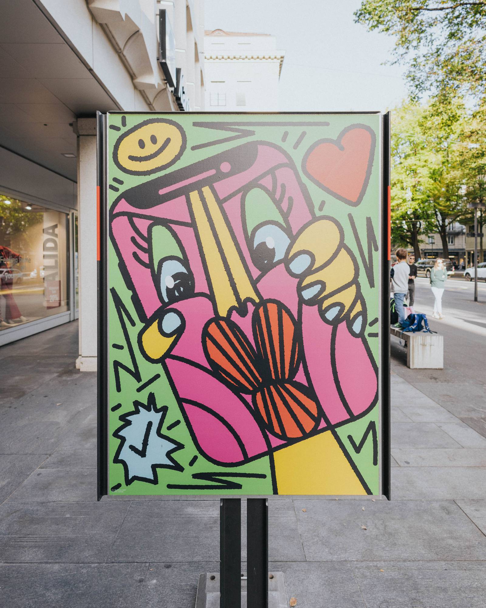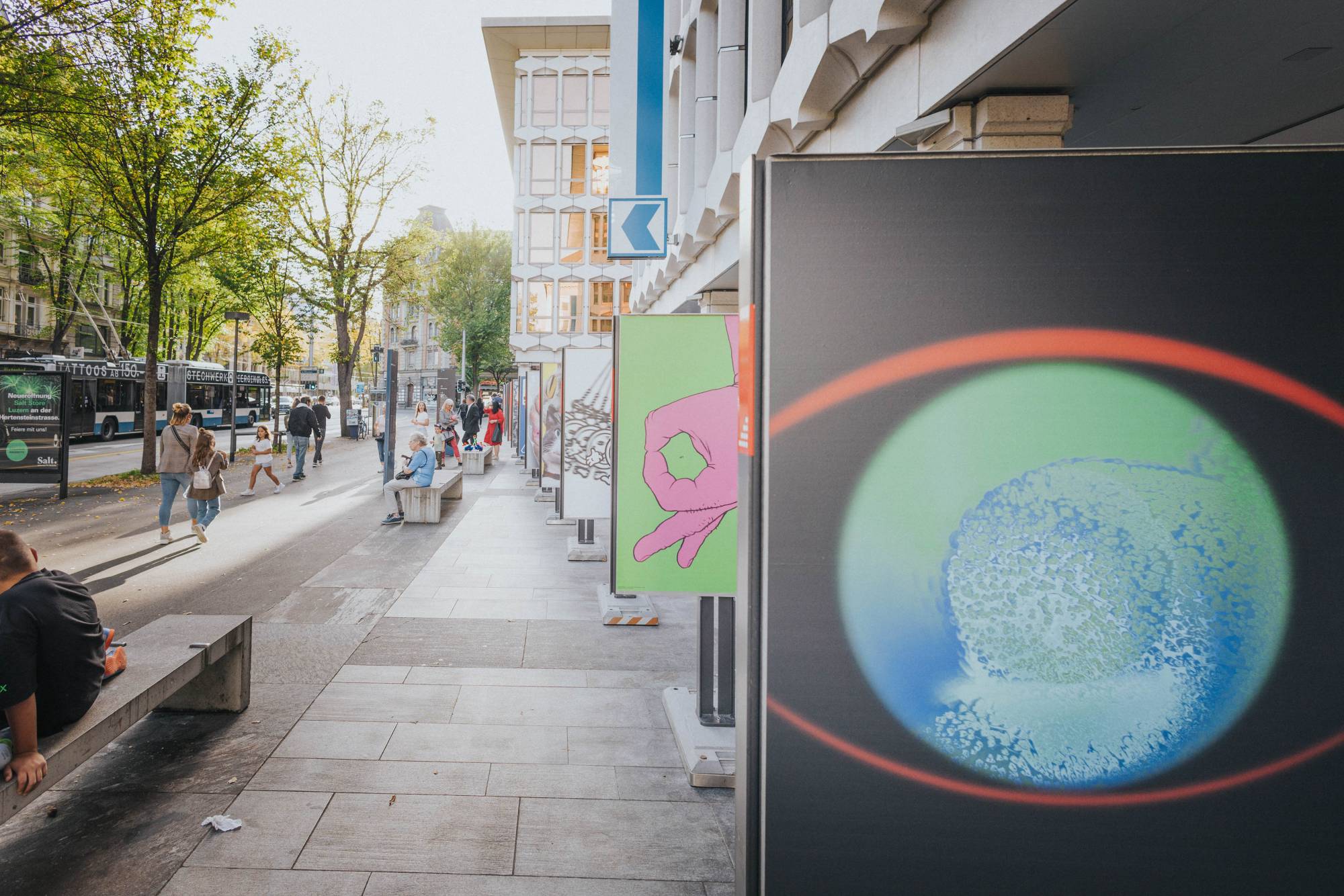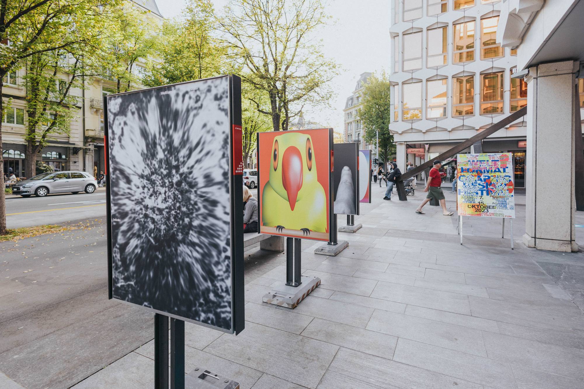 Das Weltformat Graphic Design Festival zeigte auch in diesem Jahr interessante und überraschende Entwürfe junger Nachwuchsgestalter:innen und bot damit eine Plattform, um ihre Kreativität und ihr Talent zu präsentieren. Es galt, das Thema «Look at Me» auf Plakaten auf der Strasse optimal zu präsentieren. Inmitten des intensiven Wettbewerbs müssen Plakate um die Aufmerksamkeit des Betrachters buhlen. Jedes einzelne Plakat strebt danach, mit einer herausragenden Idee oder einem auffälligen Motiv aus der Vielzahl der Masse hervorzustechen. Die besten zwanzig Projekte wurden in einer F4-Ausstellung vor der Luzerner Kantonalbank präsentiert.