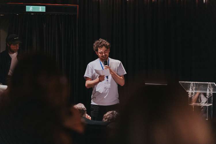 Ein weiterer Höhepunkt dieser Festivalausgabe war das alljährliche Symposium, das auch in diesem Jahr im Stattkino stattfand. Nationale und internationale Designer:innen griffen am diesjährigen Symposium das Thema Life’s a Pitch auf und erzählten von ihren Erfahrungen mit Wettbewerbspräsentationen. Es war ein grossartiges Vergnügen, unseren renommierten Gästen zuzuhören, was sie über ihre Erlebnisse und Erfahrungen zum Thema Pitch erzählen. Leonie Felber (Bern) und Josh Schaub (Zürich) haben die zwei Blöcke hervorragend kuratiert, organisiert und moderiert. Unsere Referent:innen: 2xGoldstein (Karlsruhe) erzählten aus ihren Erfahrungen als Jury-Mitglied bei der Kieler Woche. Martyna Wędzicka-Obuchowicz (Gdansk) sprach über die Pitchsituation in Polen und von der Arbeit in Gemeinschaftsprojekten. Manuela Pfrunder (Flums) berichtete über den Prozess der Neugestaltung der Schweizer Banknoten. Christian Haas (Zürich) erzählte über seine Erfahrungen mit Pitches und der Arbeit in der Agentur Raffinierie. Am Schluss stellten zwei der drei eingeladenen Studios ihren Pitch für die ETH-Buchreihe Architektonisches Wissen vor und diskutierten anschliessend gemeinsam mit einer Vertretung aus der Jury darüber. Ivan Weiss vertrat Johnson/Kingston (Bern), Nayla Baumgartner vertrat Data-Orbit (St. Gallen) und Vinzenz Meyner vertrat den gta Verlag (Zürich).